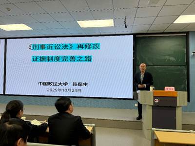 2025年10月23日下午,由西北政法大学刑事辩护高级研究院、西北政法大学刑事法学院联合主办的“刑事辩护大讲堂(第七讲)”在雁塔校区三号教学楼3J11成功举办。本次讲座以“《刑事诉讼法》再修改——证据制度完善之路”为主题,特邀中国政法大学证据科学研究院名誉院长、司法文明协同创新中心联席主任、中国法学会学术委员会委员张保生教授为主讲人,西北政法大学党委委员、副校长马朝琦担任讲座主持人,西北政法大学刑事法学院副院长刘仁琦教授作为与谈人,吸引了校内一众同学参与。