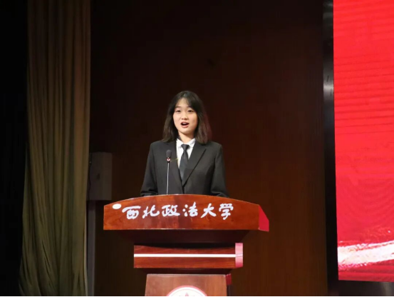2024级在校生代表于小桐结合自身经历,分享了对于法律精神的理解,并表达了对新同学的期待与祝福。2025级新生代表井纪萌则阐述了新一代法律人的选择与追求,表明了未来的目标与承诺。