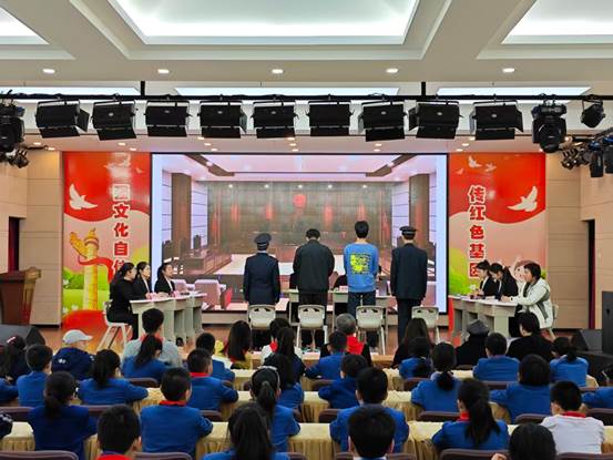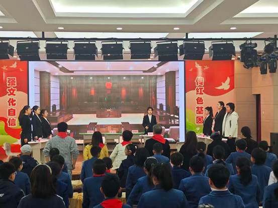 随后,我院师生精心准备的模拟法庭环节正式开始。本次模拟庭审聚焦校园生活中“因嫉妒和冲动引发同学伤害”的典型案例,完整呈现庭前准备、法庭调查、法庭辩论等关键环节,庭审节奏紧凑、程序规范,生动诠释司法实践的严谨性与公正性。西安小学同学们沉浸式感受庄严的法庭氛围,跟随案件审理进程深入思考,真切体会法律权威与司法温度。这种场景化、互动式普法形式,有效强化了法治教育的感染力与实效性。